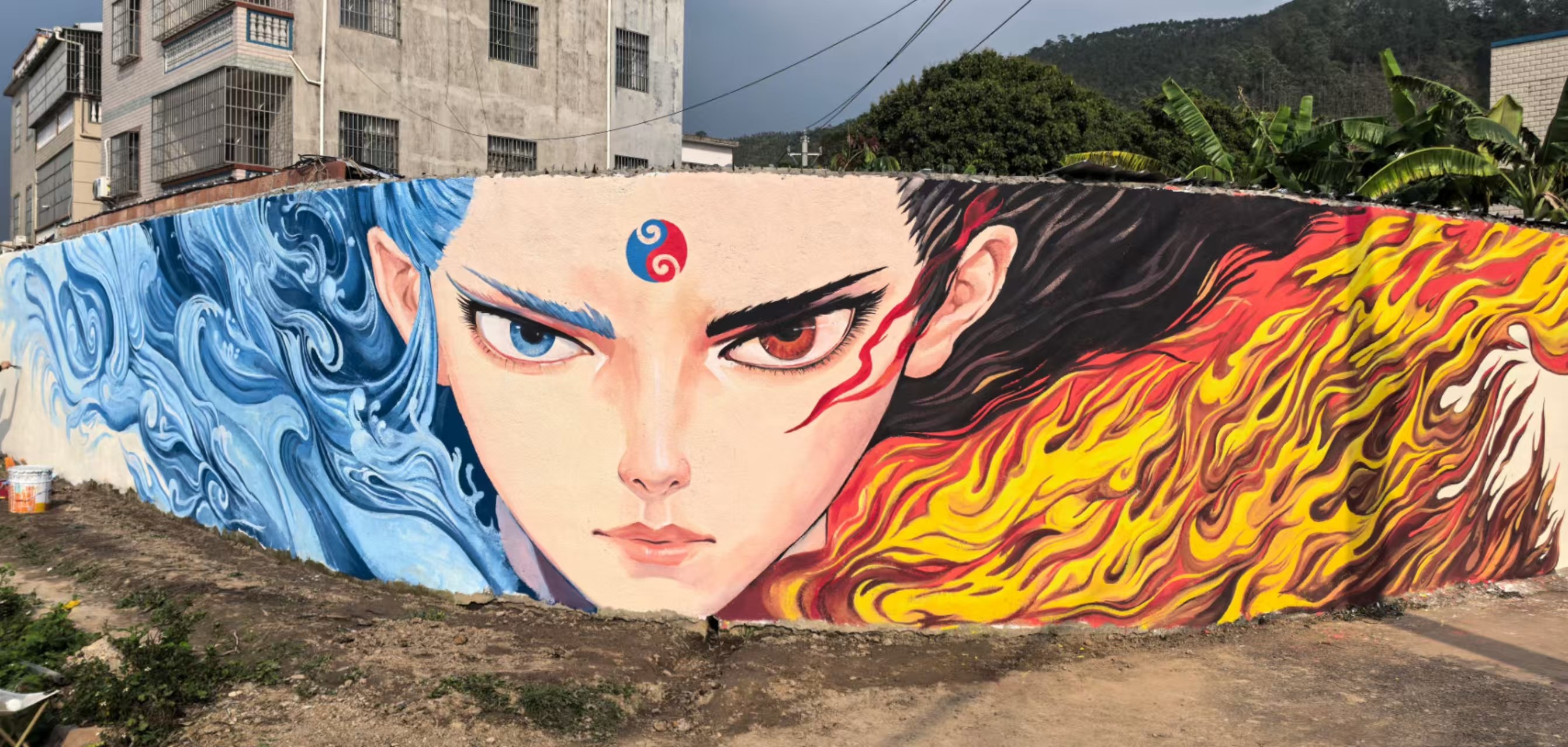 墙绘作品《水火哪吒》