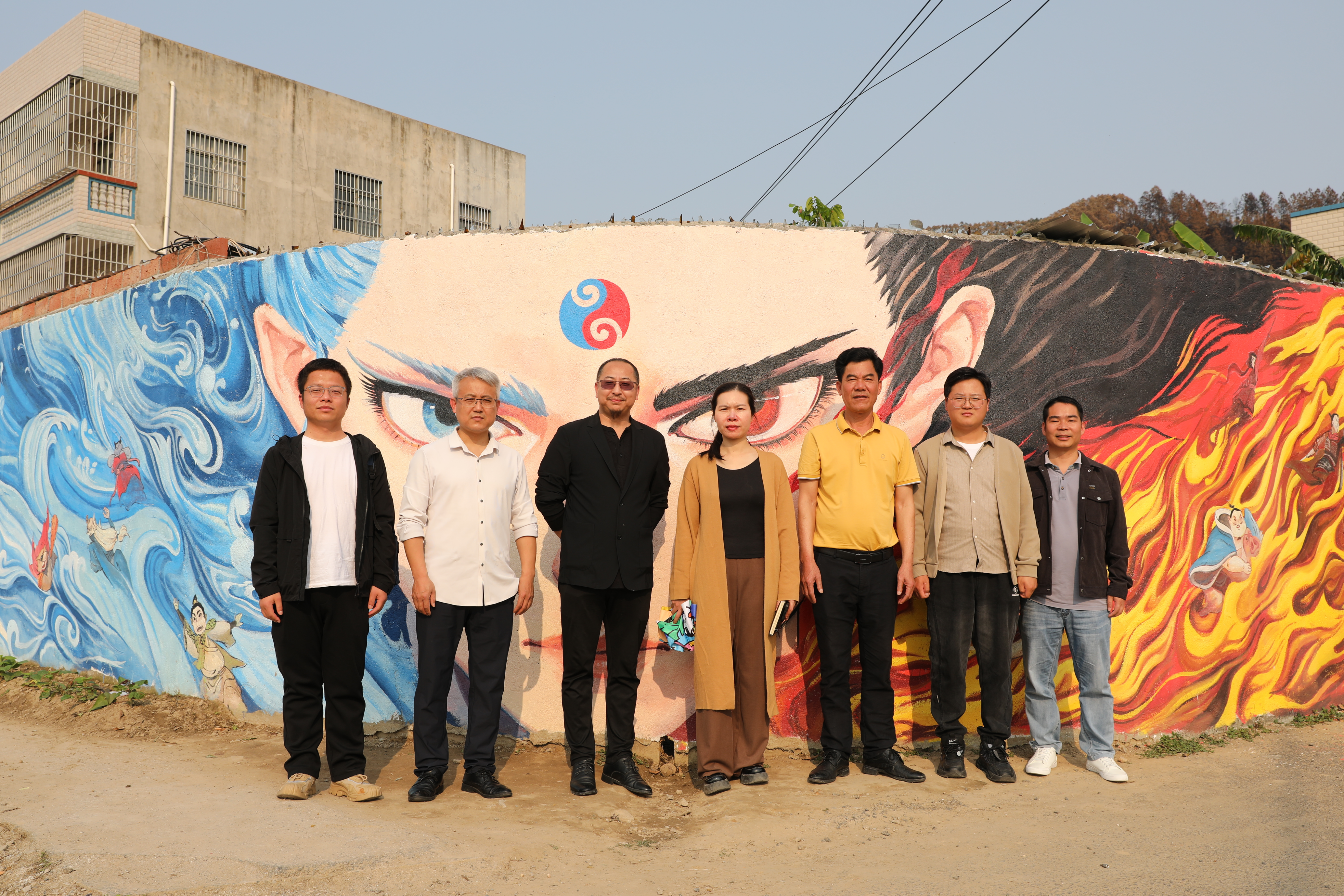 本作品以当下爆火的动漫哪吒为核心形象,巧妙融入水火元素,采用水彩墙绘形式创作而成。画面生动活泼、富有朝气,以年轻化、大众化的艺术表达走进乡村,既美化乡村环境、改善乡村风貌,又以鲜活的文化符号丰富村民精神文化生活,让艺术赋能乡村,传递积极向上的精神力量。