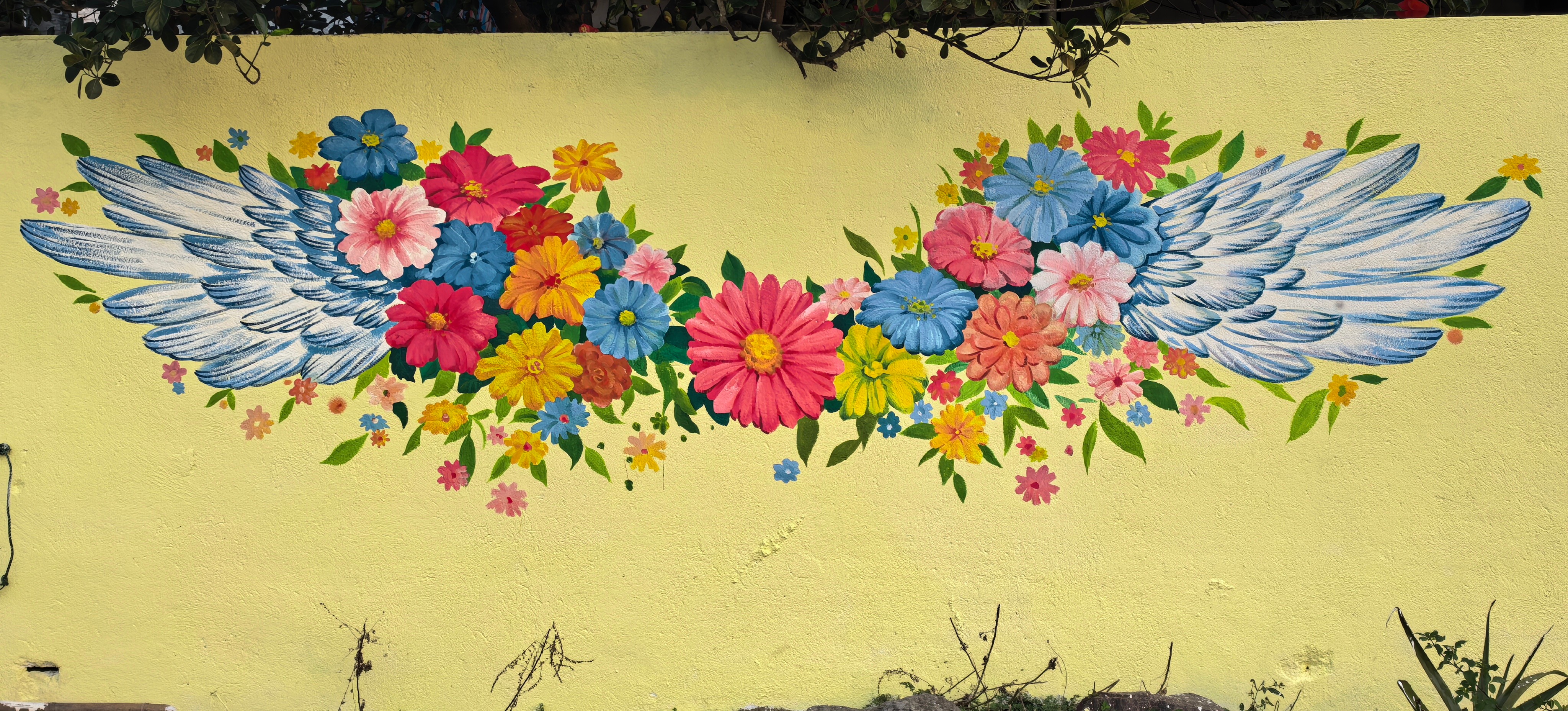 墙绘作品 《彩翼花墙》