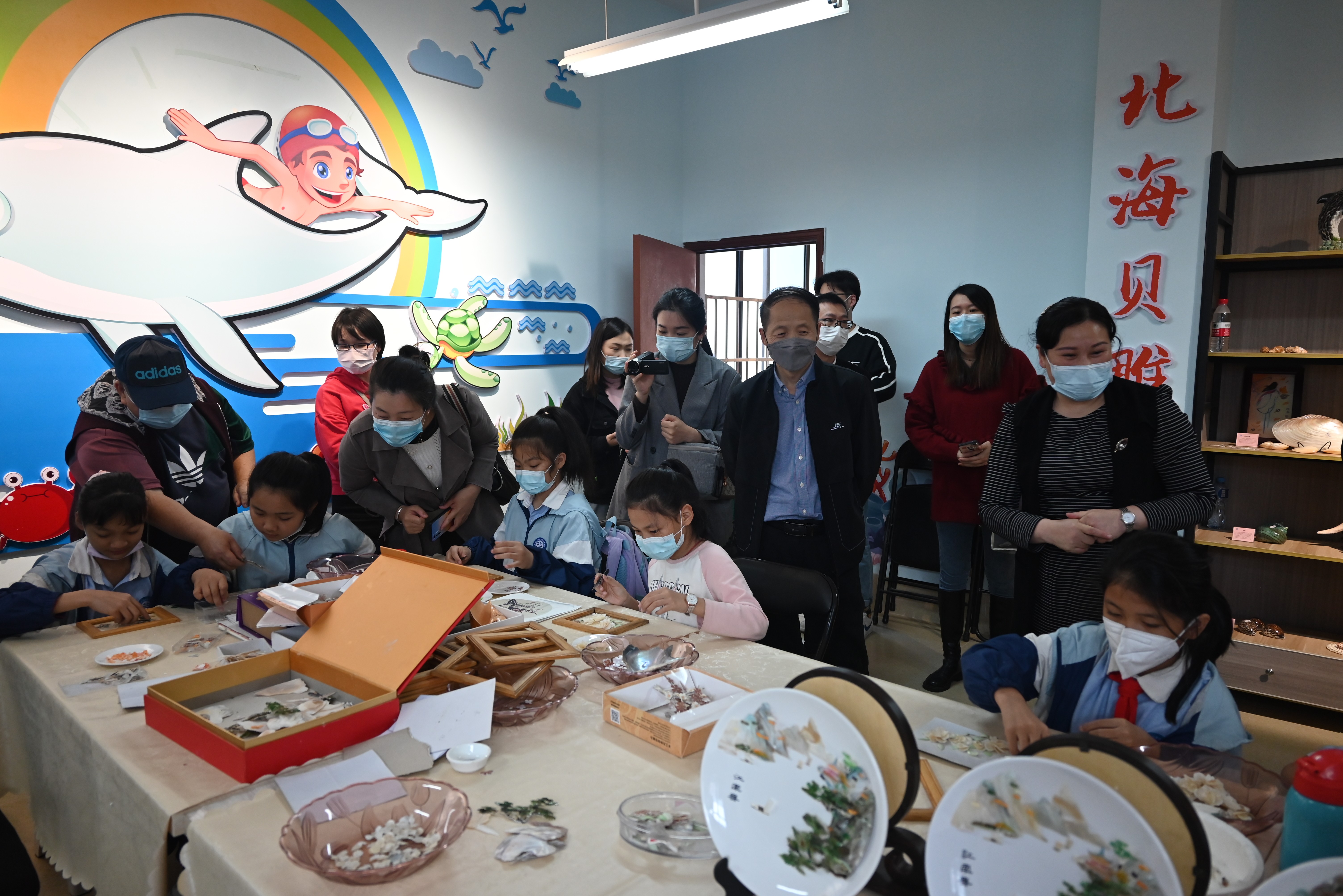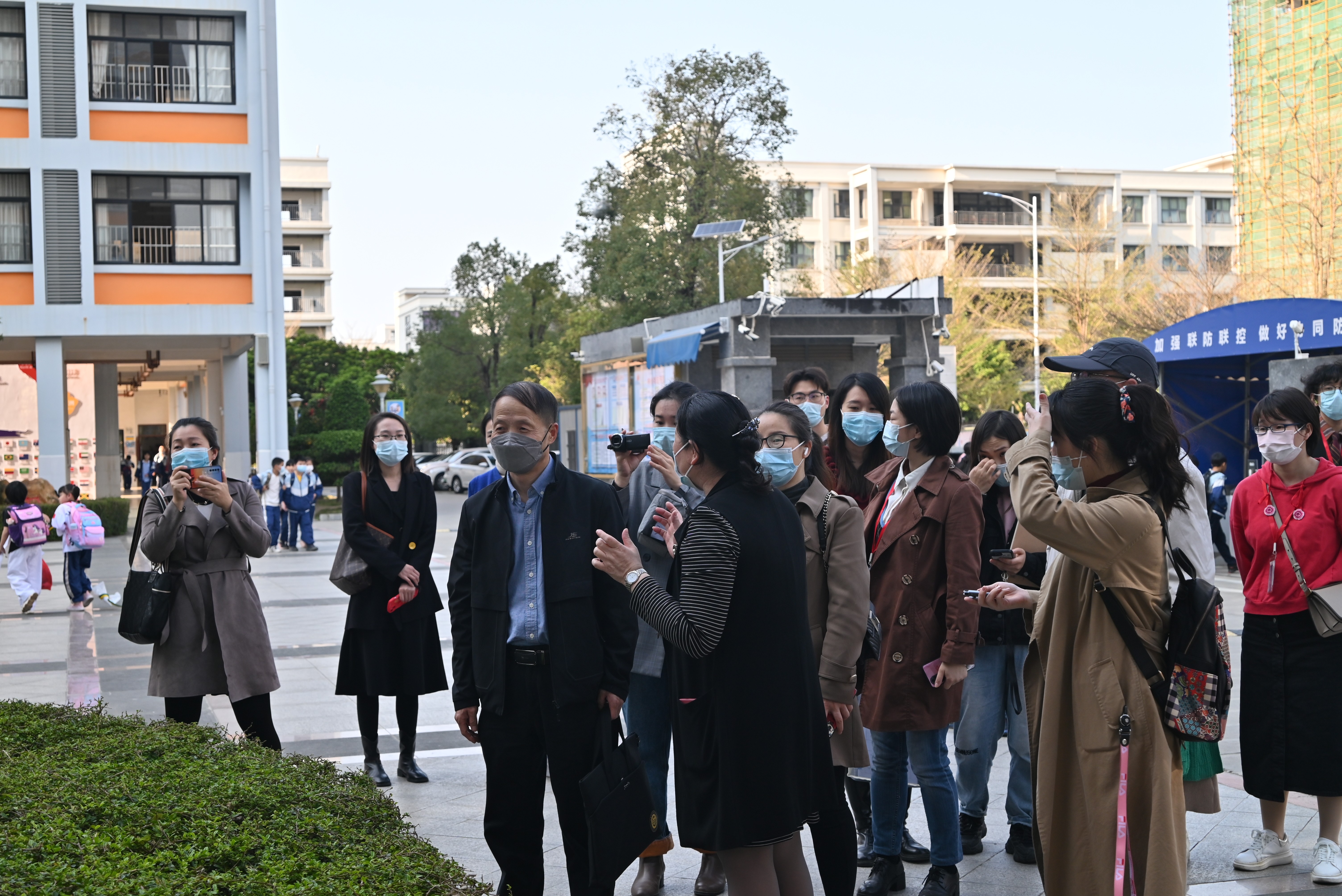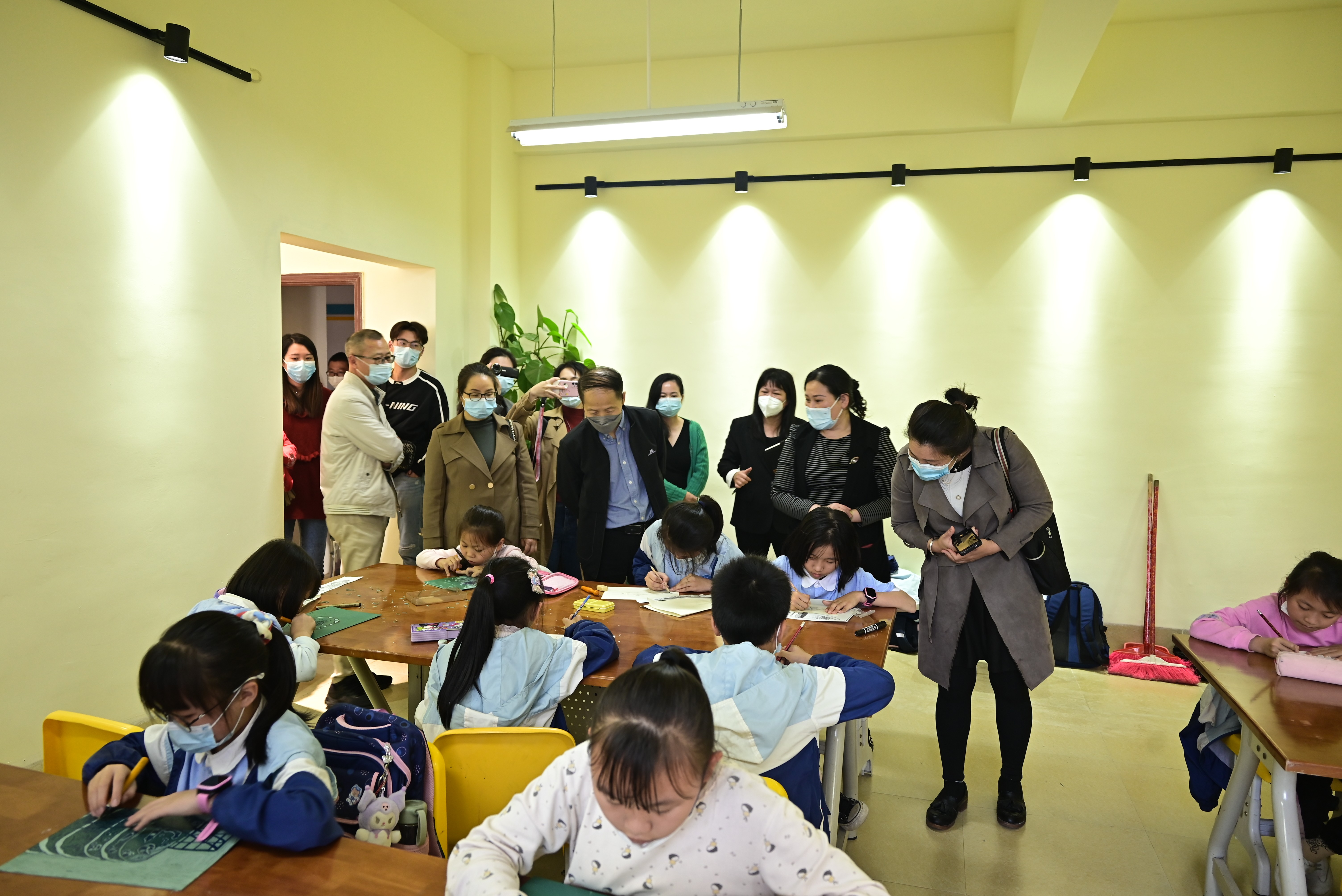 会后,包校长带领郭教授及考察团队一行人进入合唱、舞蹈、非遗贝雕传习、版画与书法的课堂进行实时走访考察。走访中,包校长带领大家到艺术教育专业的毕业实习生的  美术课堂,并向考察组详细介绍了实习生的工作安排管理,对实习生的工作能力给予了充分肯定。