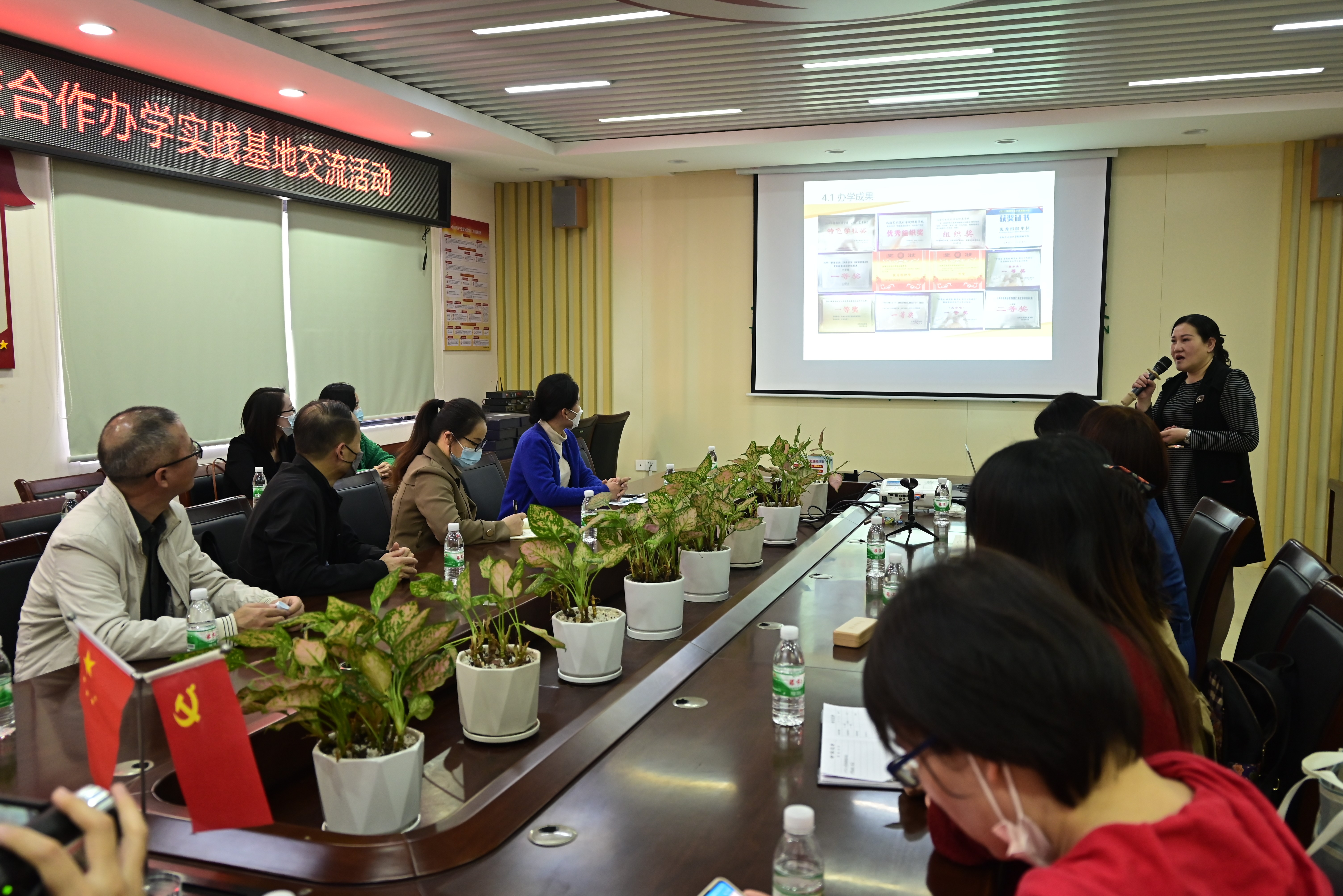 座谈会议由包玉红校长主持。会上,包校长介绍了学校师资、与北艺的合作历程、合作交流、合作课程、合作特色、合作参赛、办学成果等情况。双方围绕教学改革、学生实习实践、人才培养等方面的合作开展情况进行了深入的交流,重点对附校的“艺养教育”取得的长足进步,双方均给予高度评价。特别是由艺术教育专业的师生与附校师生共同建设的童声合唱团,为附校在市级、区级、国家级比赛中多次斩获荣誉,进一步提升了附校在社会上的影响力,现已成为家长口中的“金字招牌”,进一步提升了附校的综合实力,并在家长的口碑相传中扩大了附校的知名度和社会影响力。包校长希望未来两校可以继续加深产教融合,扩大合作领域,加强校校共建,进一步推进教学改革,取得更多的教学成果。