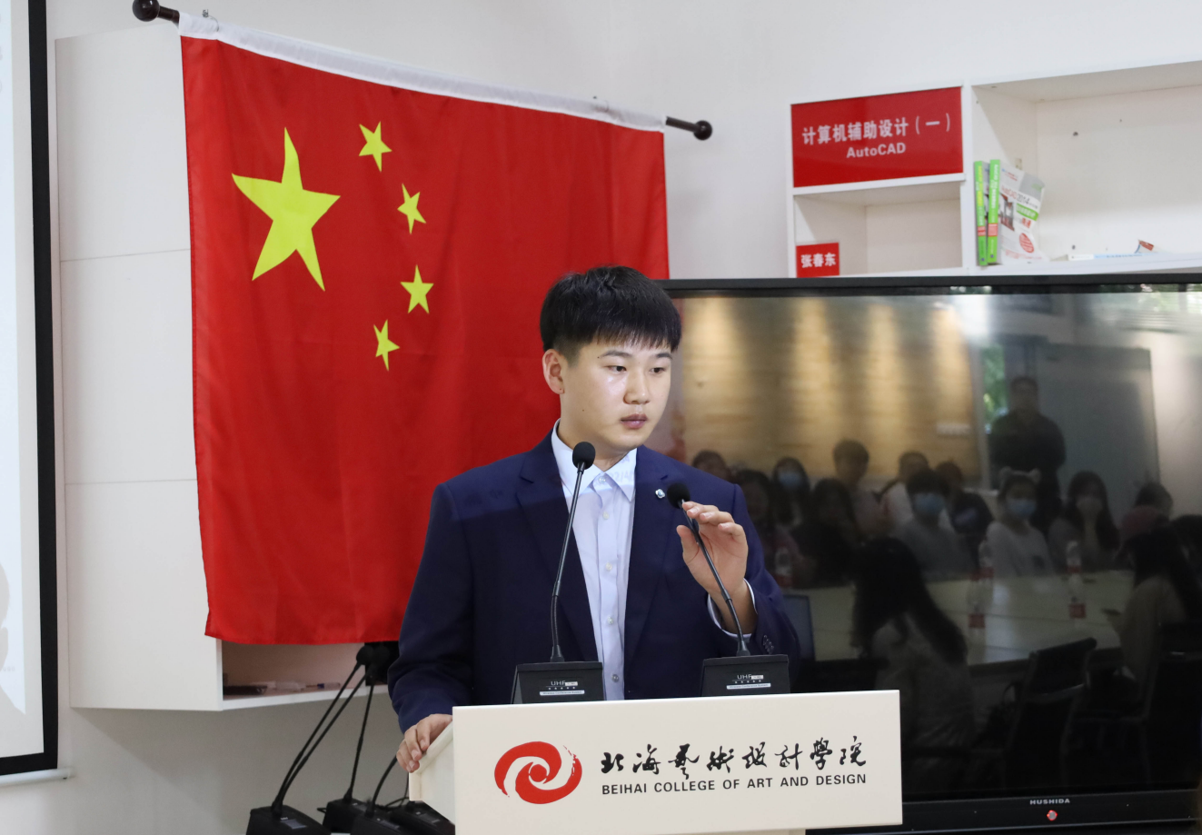 将分享共鸣,实力共达,经验共勉。4月22日下午4点建筑与环境艺术学院第五期《开讲吧!学长学姐》主题分享会于公德楼207顺利开展。活动邀请到我院19级优秀学生李嘉皓主讲。北海艺术设计学院校团委组织部部长陈文斌,建筑与环境艺术学院分团委书记雷勇、指导老师朱红瑞出席活动。