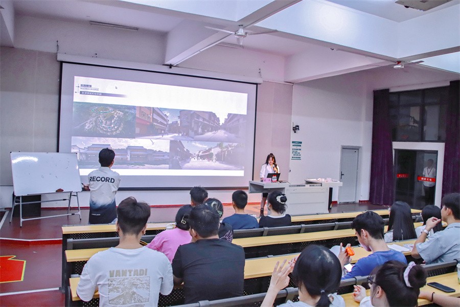 随后,武杰院长向大家展示了涵盖数媒、环艺、视传以及动画专业的方案——《大吉沙稻香园》、《渔网小镇》。大吉沙岛位于广州黄埔区,自然与现代相结合的设计理念吸引众多游客前往观光,同时也向大家展现了独具个人风格的设计。渔网小镇位于广东茂名的石鼓镇,其依托得天独厚的资源禀赋,利用当地特有的渔网文化进行旅游景点的设计,精笔勾勒田、水、乡村、镇墟、园区肌理。这些作品让在场的同学们学习到如何将专业的理论知识转化为实践,更加深入了解设计带给人们的视觉享受和精神享受。