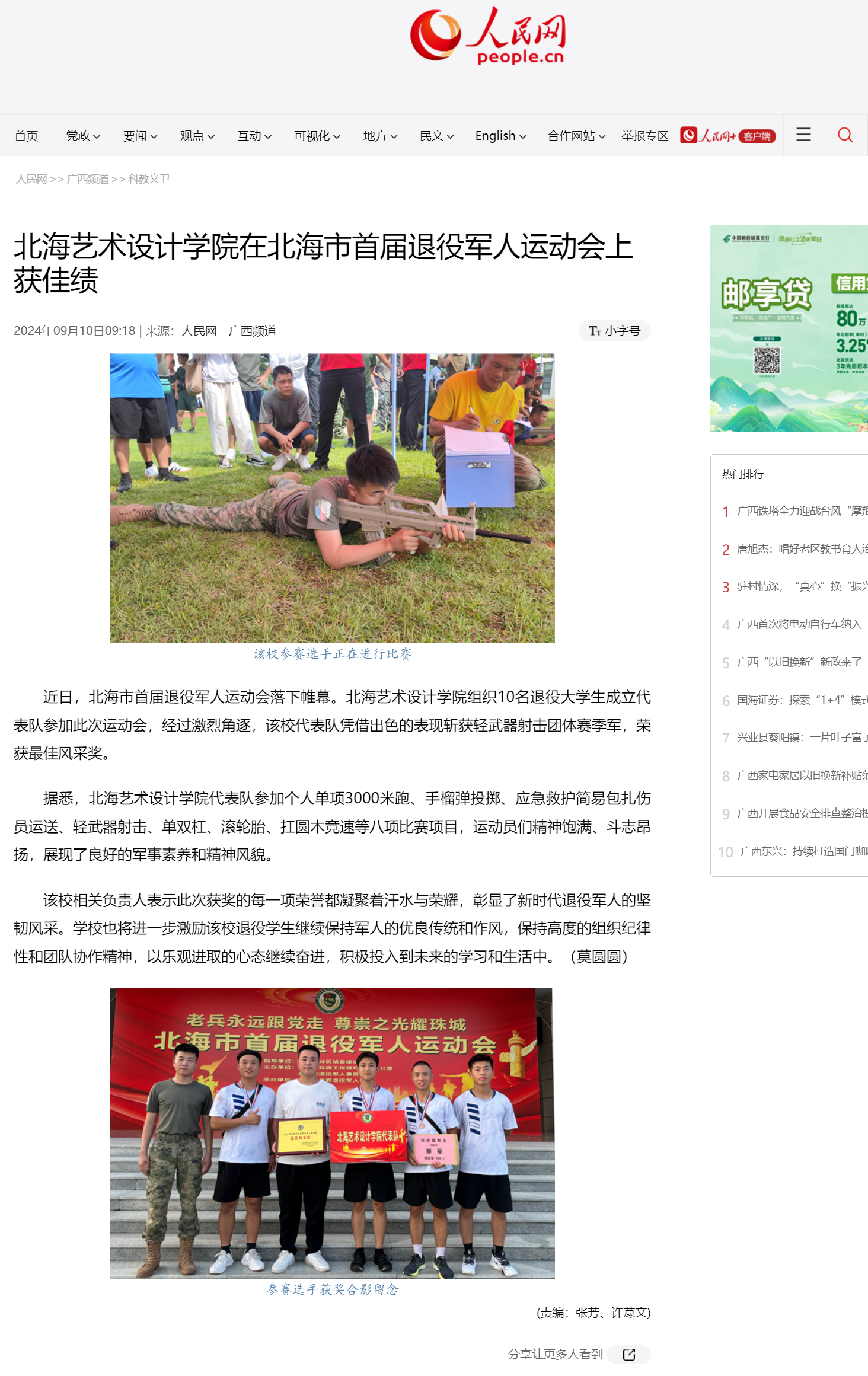 人民网:北海艺术设计学院在北海市首届退役军人运动会上获佳绩