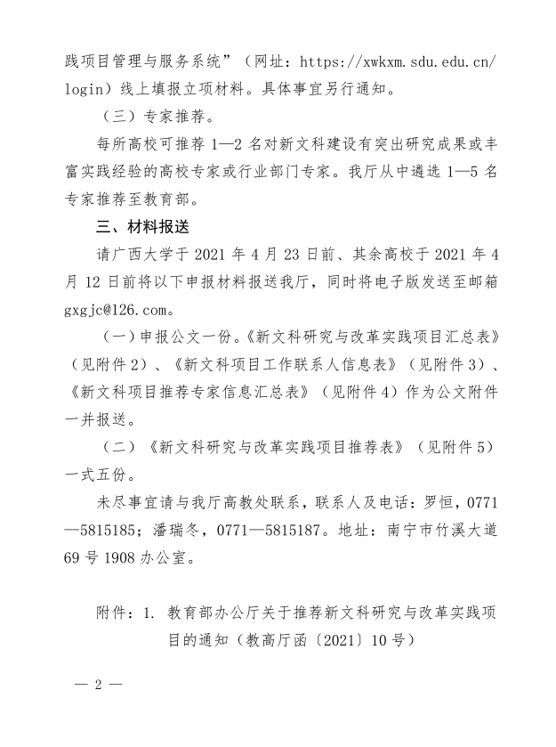 自治区教育厅关于申报2021年度 广西高等教育本科教学改革 工程项目的通知