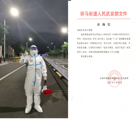 2022年7月12日,北海突发疫情李清山积极响应政府的号召,主动请缨,参加抗疫志愿服务工作,在高风险区域负责医疗物资发放、核酸点秩序维持、发放物资等工作,勤勤恳恳,任劳任怨。