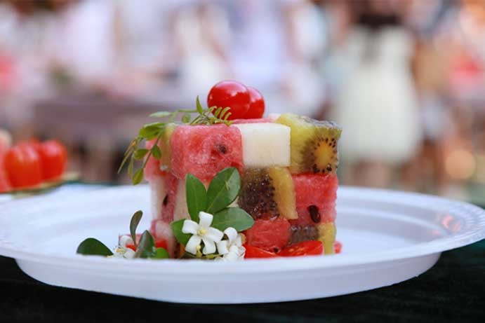 2015年4月29日,在艳阳似火的下午,整个校园却好似浸泡在甜爽的水果海洋中,2015校园文化艺术节水果拼盘大赛在篮球场上火热进行。出席本次活动领导老师有学院党委副书记、副院长彭仁,学工处处长刘承初,团委书记杜博,学工处副处长、设计学院学工办主任庞定坤,动画学院学工办主任何煜,团委副书记文春明以及班媚、刘玲花、严腾、张帆等四位评委老师。