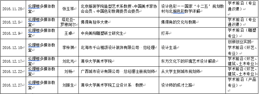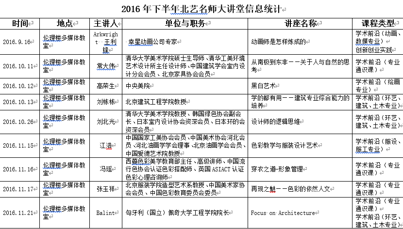 2016年下半年北艺名师大讲堂信息统计