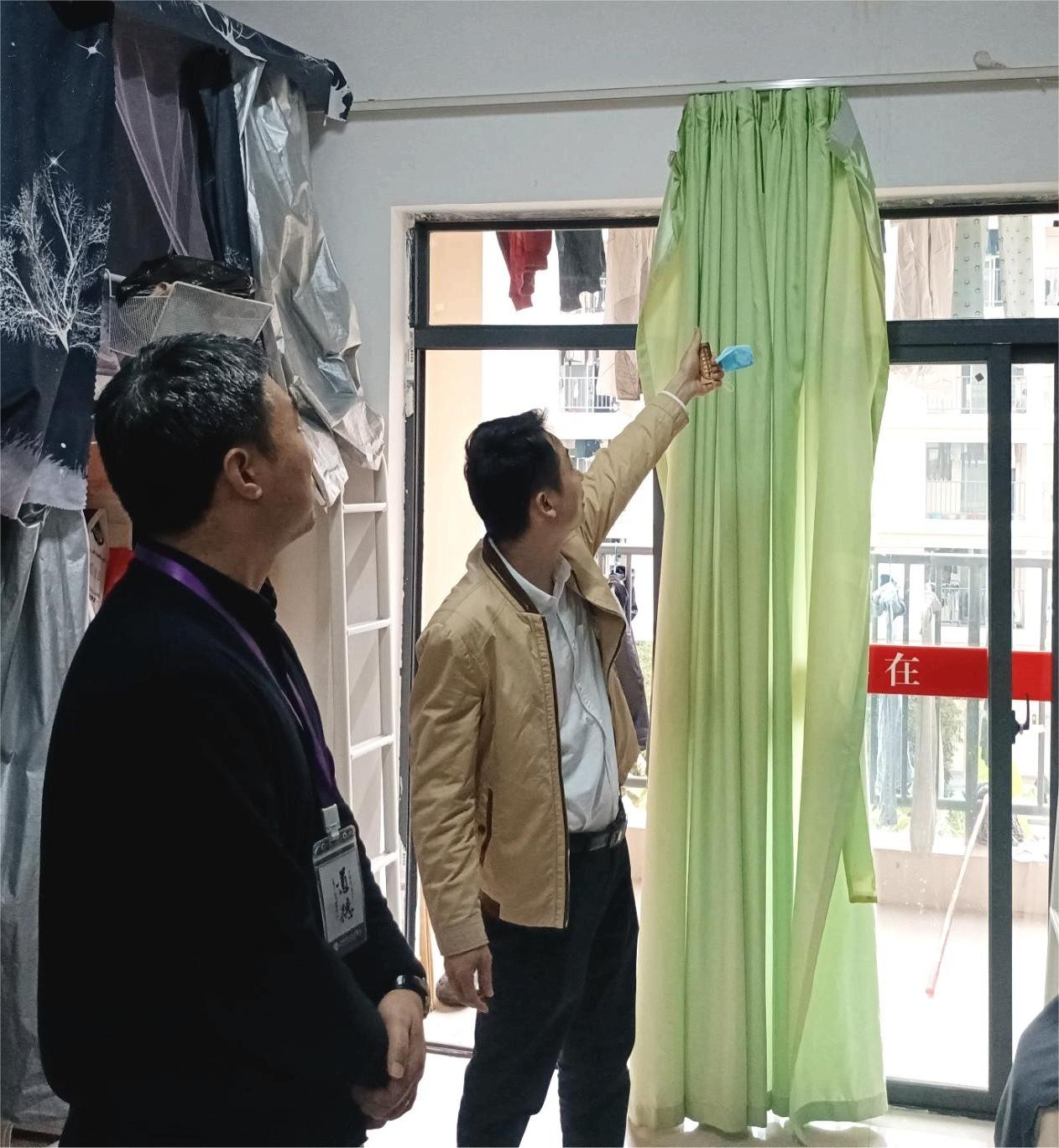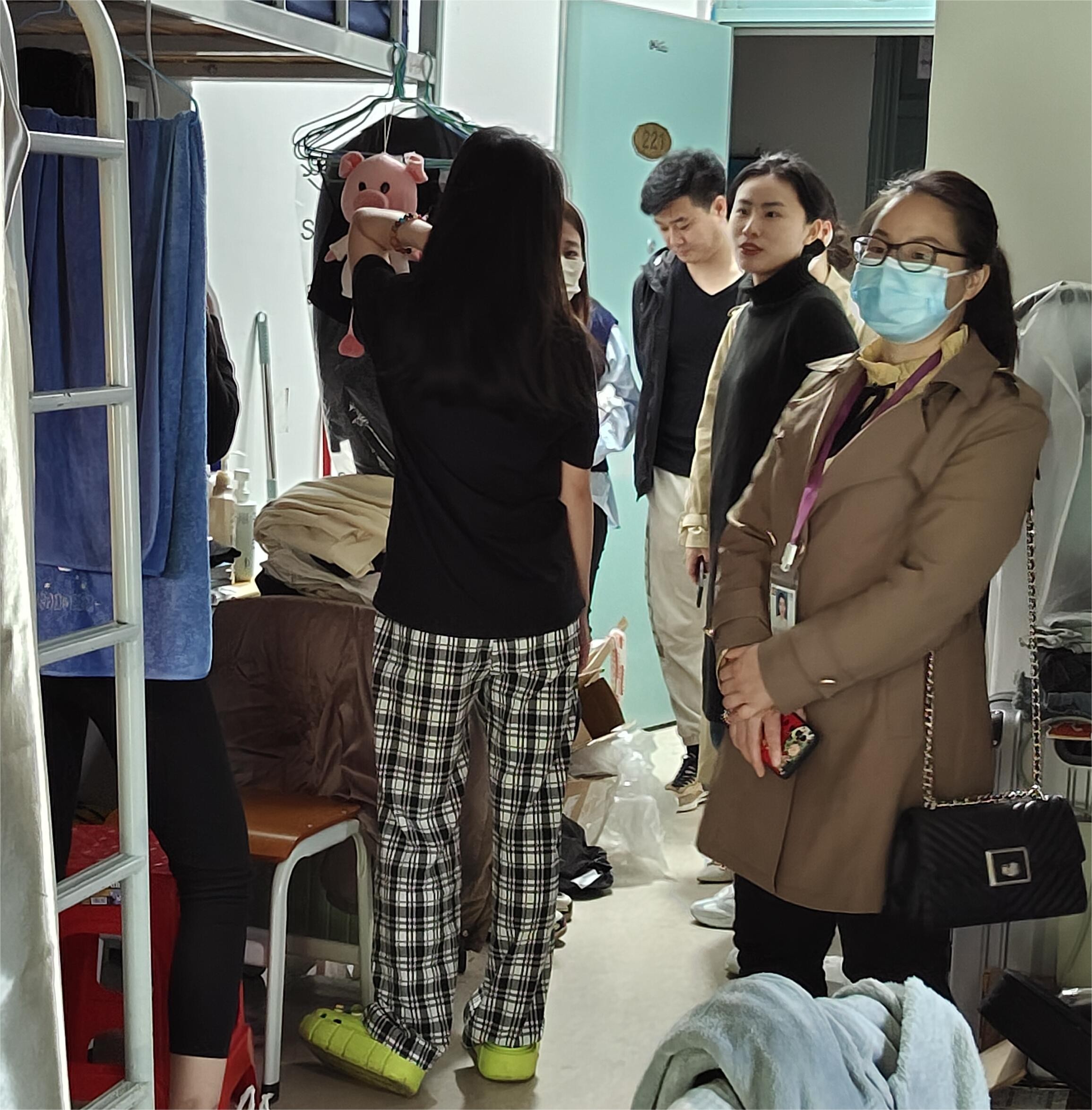 (学院领导检查寝室设施)