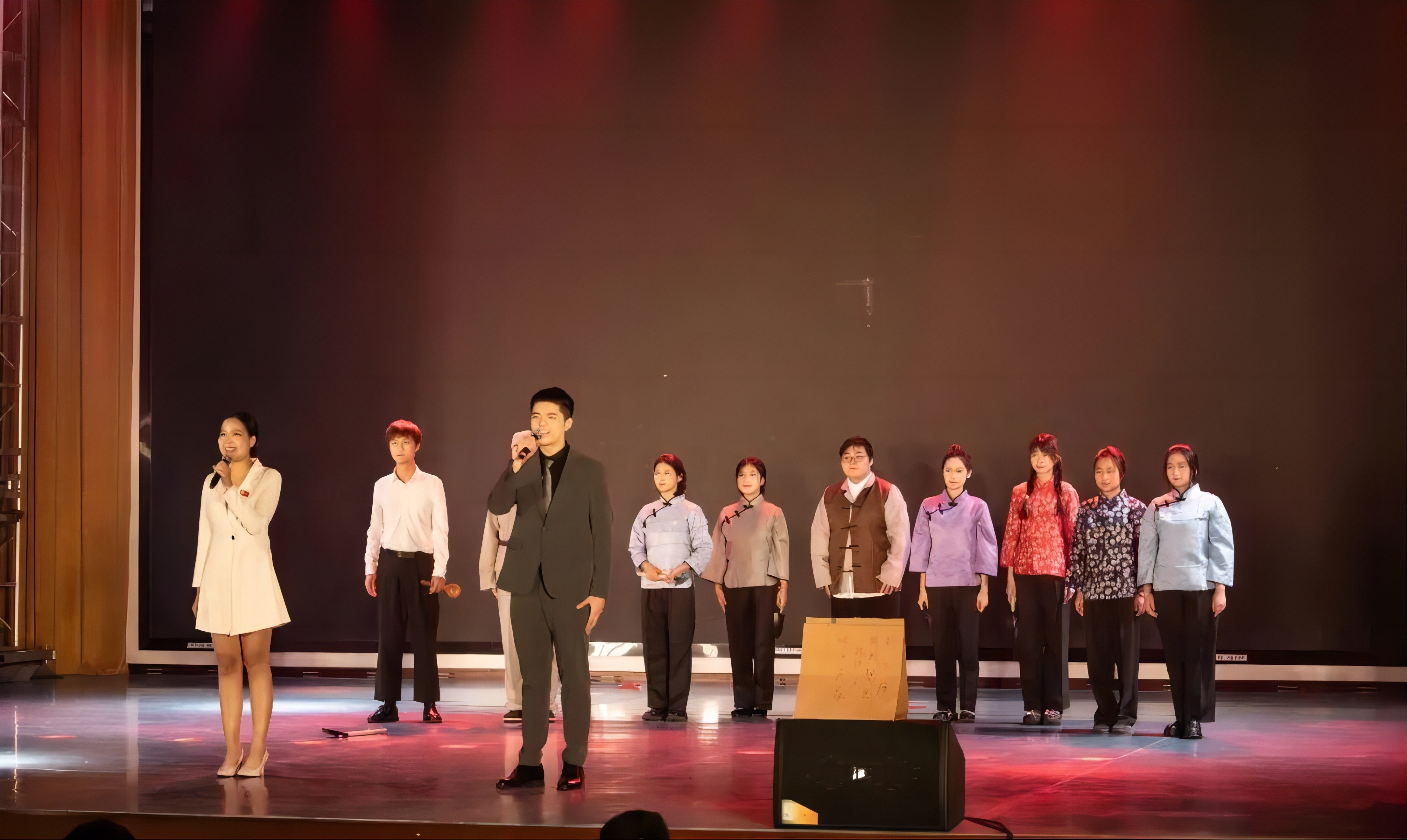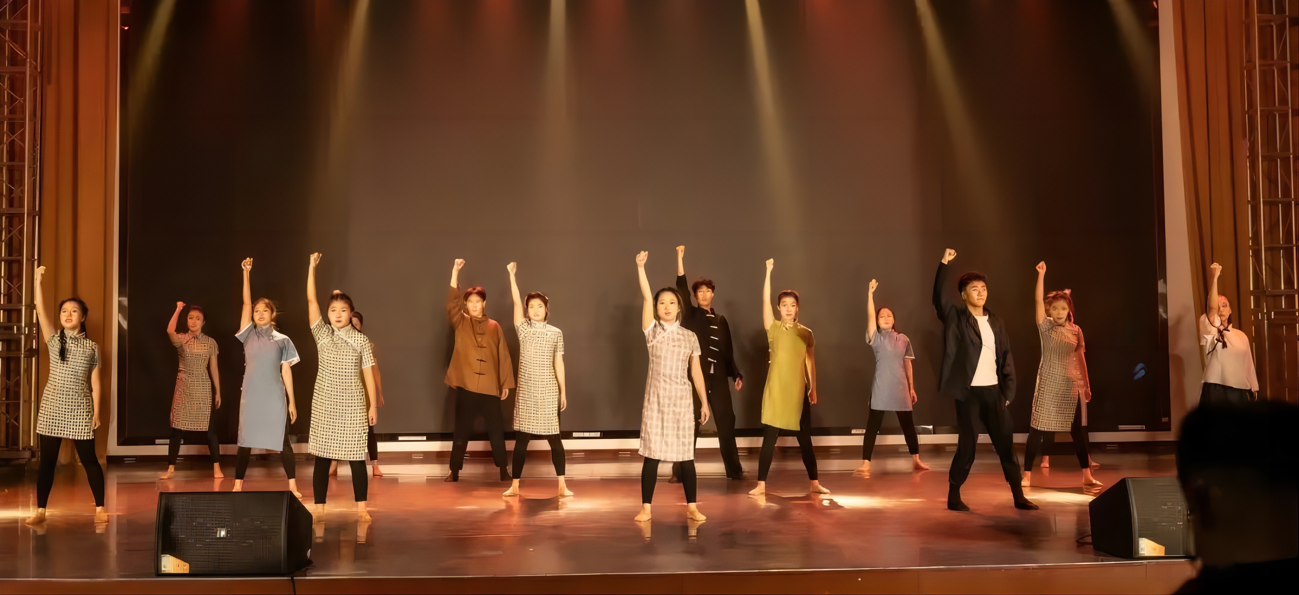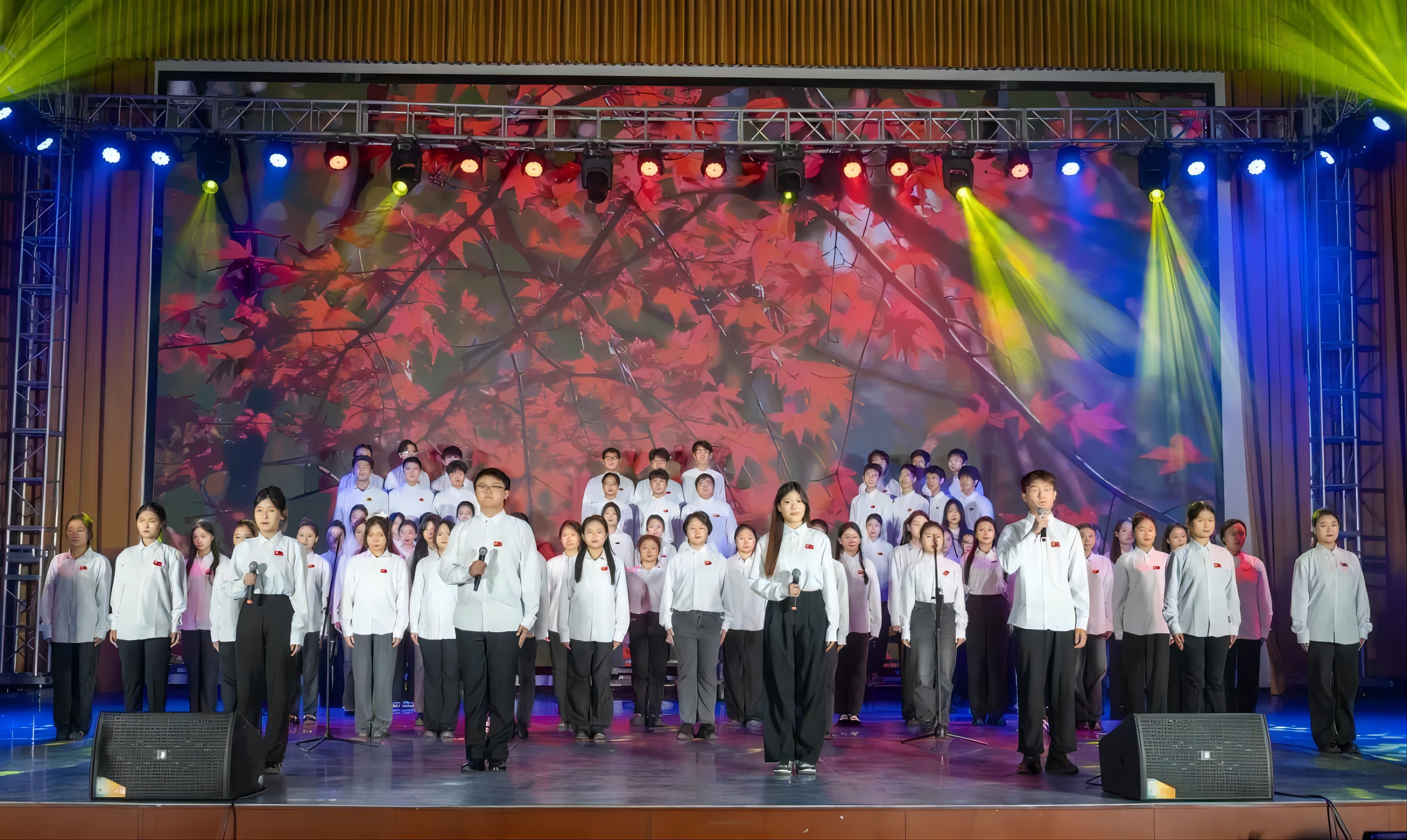 随后,由校合唱团带来的合唱《太行山上》余音绕梁,结合现场书法气势恢宏,台下观众情绪随着旋律此起彼伏;舞台剧《红绸》用艺术的方式讲述了中国共产党诞生的故事,现场热血激昂;舞蹈《风筝》《雨花石的等待》《离开雷锋的日子》《永不消逝的花》用不同的舞蹈风格,展现了永远跟党走的决心和对革命历史故事感悟;群体诗朗诵《沁园春·长沙/沁园春·雪》《为有牺牲多壮志》铿锵有力,用声音传递伟大革命思想;朗诵《毛主席的光辉照万代》体现了民族大团结,同心同向在学习伟人的光辉历程中不断前进。