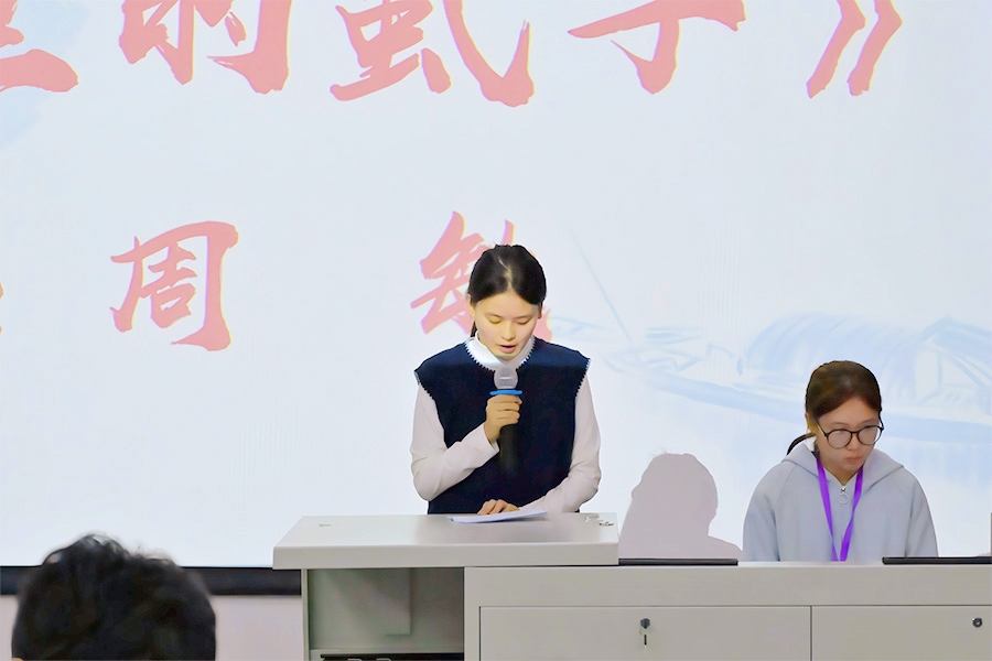 最后,文学院常务副院长梁镨文作总结致辞。她强调,本次比赛不仅充分彰显了同学们的思辨能力与创作热情,更助力当代学子研读经典,于文本深处汲取智慧养分、凝聚前行力量。梁副院长勉励全体同学以本次大赛为新起点,在未来的学习与人生道路上始终秉持人文情怀与思辨精神,以经典为伴、与思想同行,书写属于新时代青年的精彩青春篇章。