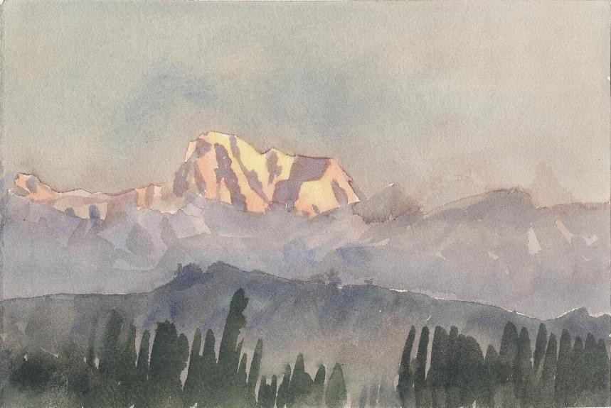 《金色的博格达峰》·28.3x19cm ·水彩·2012年