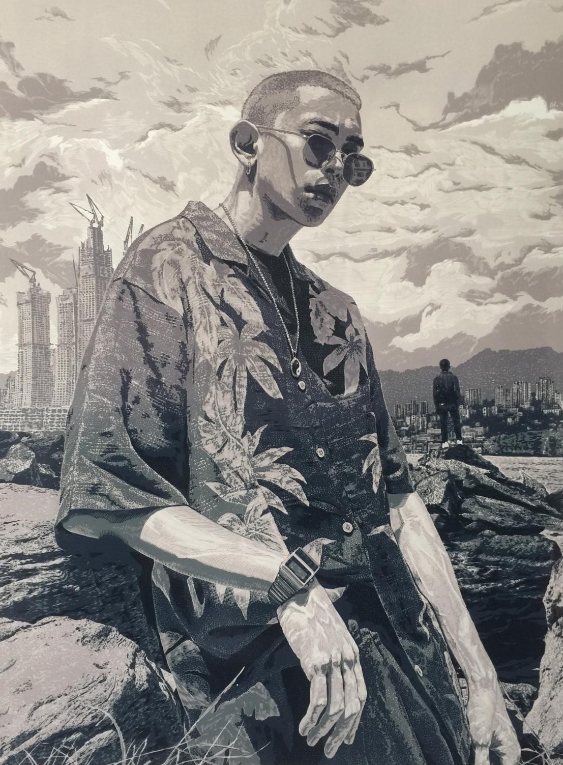 《庇护》 黑白木刻版画 70×180cm