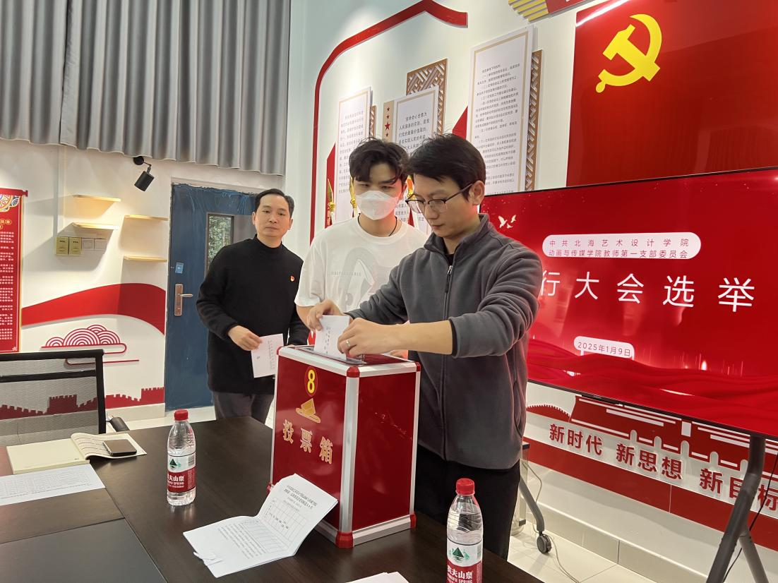 1月9日,北海艺术设计学院动画与传媒学院教师第一党支部召开了换届选举大会,会议在庄严的国歌声中拉开帷幕。