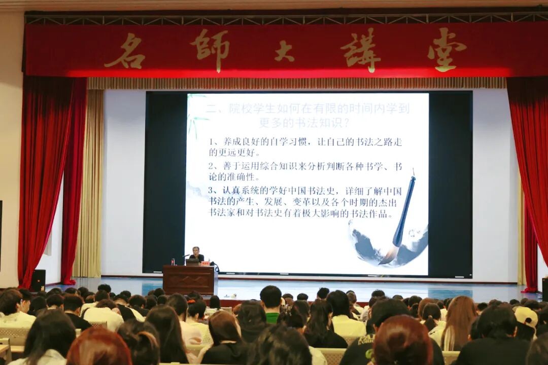 李和生教授从三个维度给出具体指引:一是强调养成自主学习习惯的重要性,在课堂之外要主动加强书法练习,同时注重对学习内容的思考与总结,实现“练”与“思”的有机结合;二是倡导运用综合知识体系分析书学理论与书论观点的准确性,以“创新”与“出新”的区分为例,明确“创新需融入个人理解与独特风格,而非对传统书法的盲目改造”,引导学生树立科学的创作理念;三是提出系统学习中国书法史的必要性,引导学生深入了解各历史时期代表书家的核心艺术成就,并推荐《中国书法史》《历代书法论文选》等经典著作,建议学生通过精读提升专业理论素养。 随后,李和生教授全面阐述了书法学习的多重价值与意义。他表示,书法作为中国传统文化的重要载体,承载着千年文化基因,学习书法必须以敬畏之心对待每一个汉字,切实承担起文化传承的责任。同时,他结合未来社会发展趋势指出,在科技高度发达的时代背景下,个人要想立足社会,需通过书法学习修心养性,提升艺术鉴赏能力与审美水平;强调书法学习不可急于求成,需秉持踏实专注的态度,兼顾理论学习与实践练习,实现知行合一。此外,李和生教授还结合自身从业经历,向学生介绍了书法专业广阔的就业前景,为学生未来职业发展提供参考。 讲座尾声,李和生教授针对学生提出的“如何避免书法学习走弯路”“怎样准确开展读帖与临摹练习”等实际问题,结合自身多年教学与创作经验,以专业视角逐一解答。现场答疑既有理论高度,又具实操性,帮助学生厘清了学习中的困惑,进一步激发了师生对书法学习的热情与兴趣。 此次讲座不仅为我校师生提供了与书法领域专家面对面交流的机会,也助力师生深化了对大学书法学习的认知,对推动我校书法文化传播、提升学生人文素养具有重要意义。讲座在全体师生的热烈掌声中圆满结束。(范佳涵 摄)
