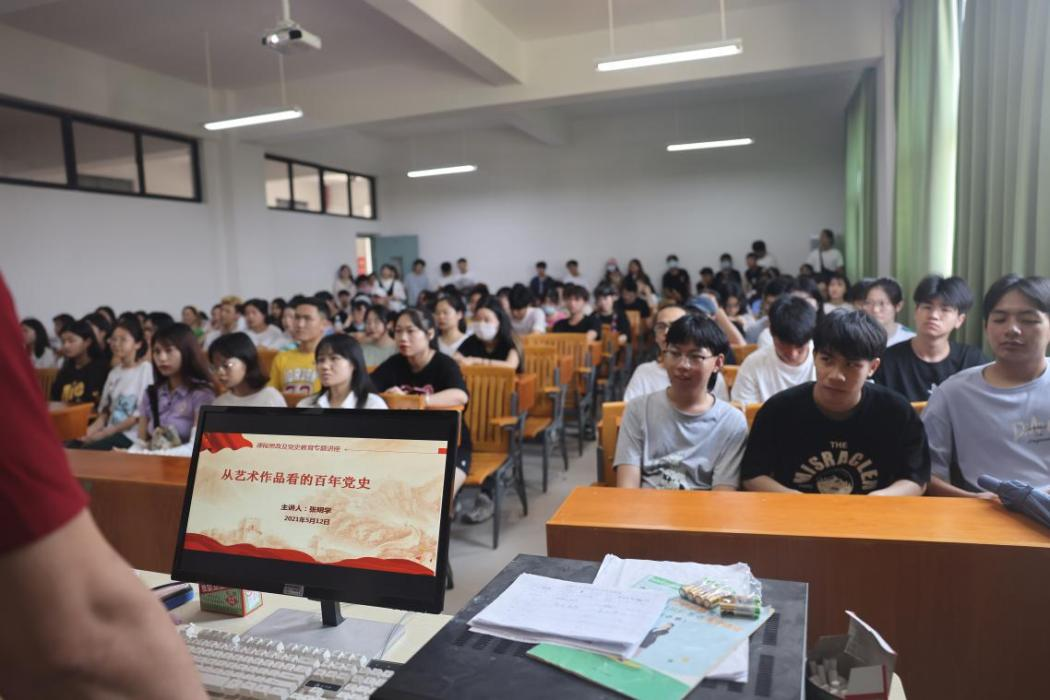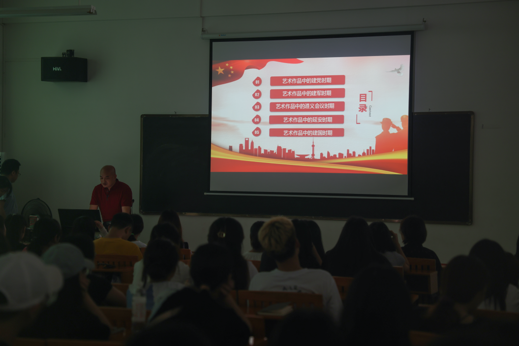 下午3点,张教授在艺术楼314多媒体教室为18级绘画的学生开展了一场名为《从艺术作品看百年党史》的精彩演讲。