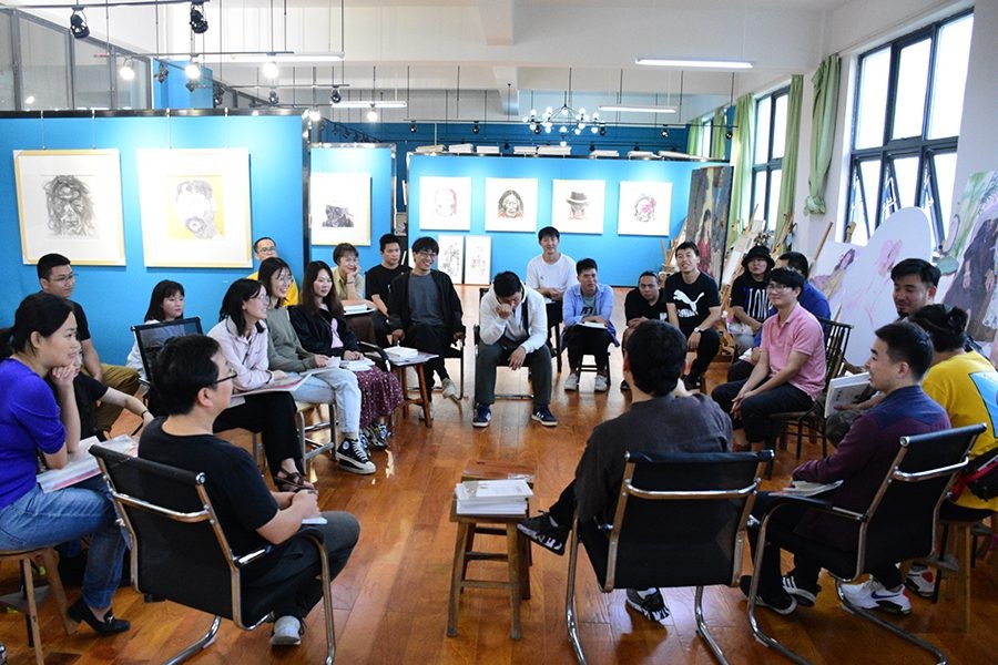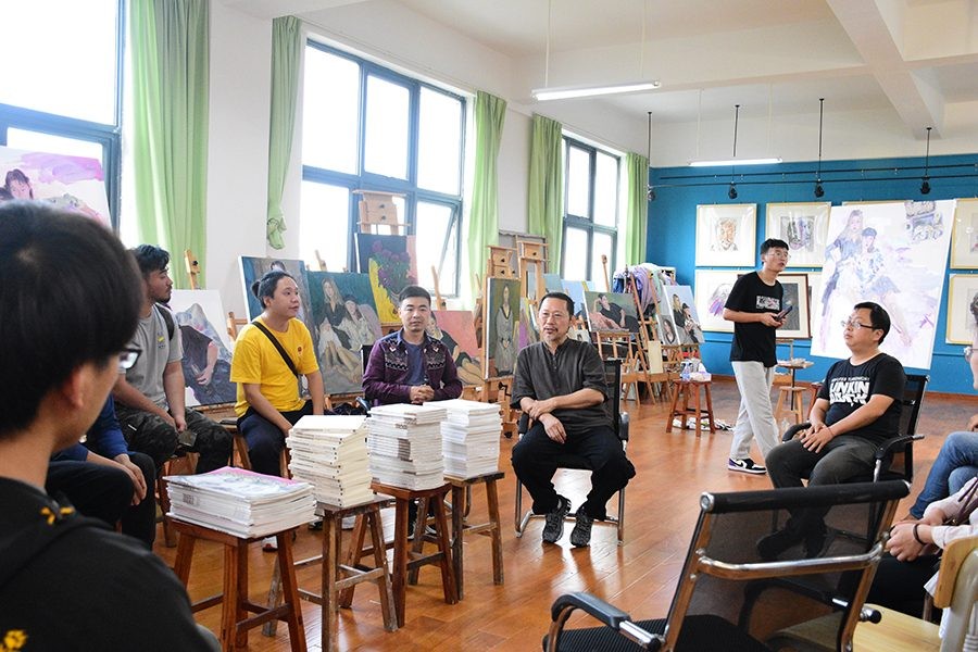 2020年11月25日星期三下午, 中央美术学院刘斌教授莅临美术学院艺术楼212开展绘画教学座谈会,本次交流会特邀美术学院常务副院长龚为以及美术学院绘画专业教师参加。