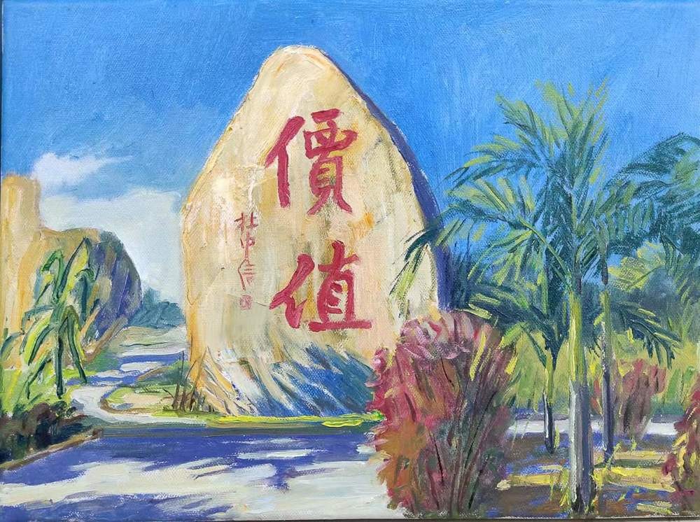 美术学院《风景写生》课程以校园风景写生为主要研究内容与实践方向,绘画过程围绕校园风景的色彩、构图展开,通过对校园选取适当的视角进行绘画表现,让同学们的目光更进一步的贴近校园,加深对学生对校园文化的理解。绘画过程既锻炼了学生们的构图和画面安排的能力,也培养学生对校园文化的认同情感,对绘画专业学生创作能力有很大的提高。比如学校的每一块石头的字样都有不同的涵义,通过写生实践活动,进一步加深了对北艺校园石头文化背后精神的理解。