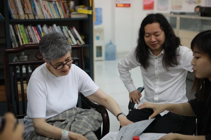 下午5.30在综合楼3楼动画工作室,学院与Jane Stanton院长进行了教学座谈,动画学院常务副院长陶立阳向Jane Stanton院长介绍了学校历届学生的优秀作品,随后Jane Stanton院长对学院的作品表示了高度赞赏,随后在四楼演播厅参观和观看了学院历年的作品影片,看完后Jane Stanton院长表示了由衷的赞叹,她表示动画学院的作品非常优秀,不论是手绘还是二维,三维都做得很棒,在场的院领导们也表达了要互相学习的态度。