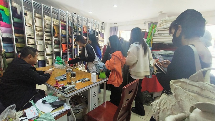 学生自主挑选面料
