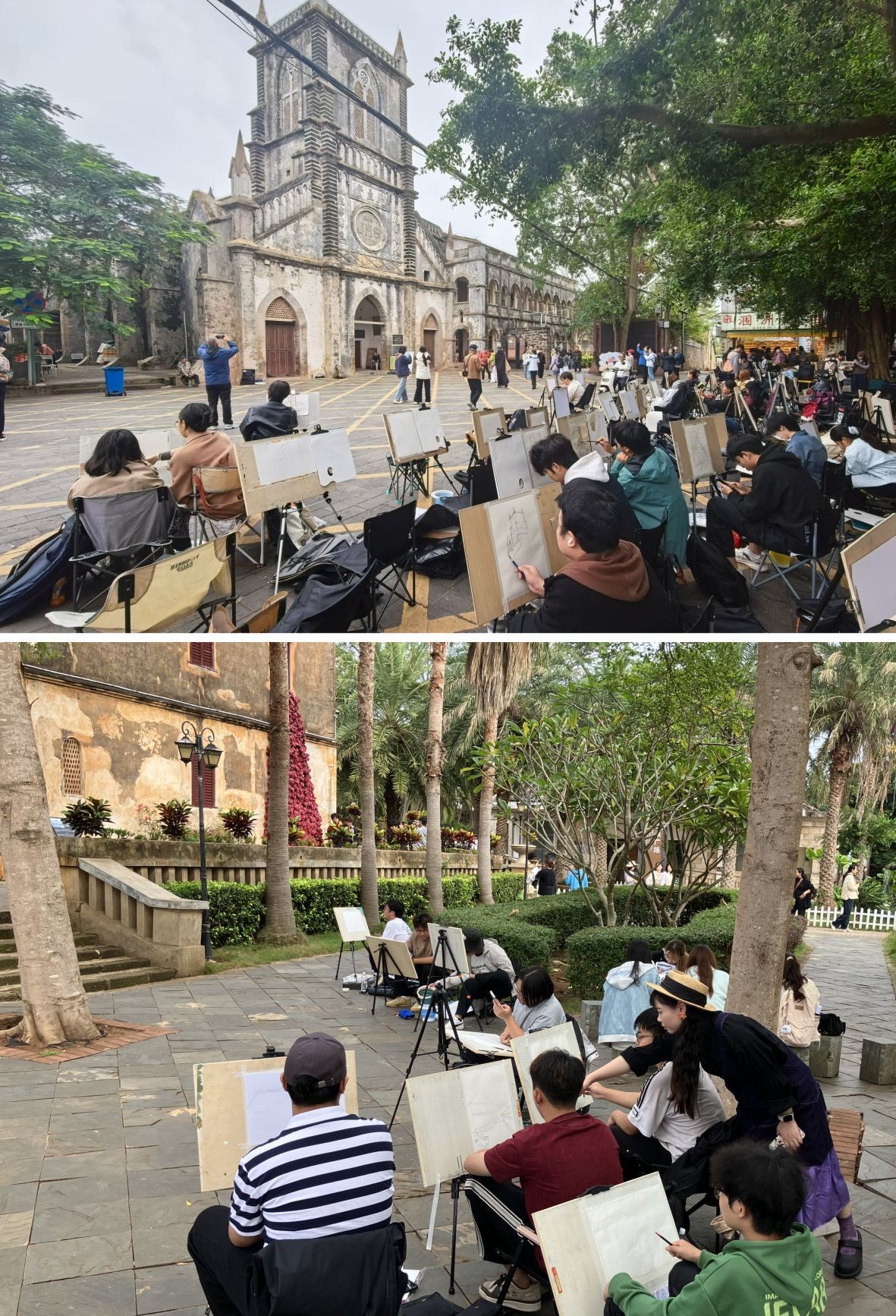活动期间,学生足迹遍布红色广场、鳄鱼山火山地质公园、南湾码头、盛塘村教堂等地,通过自然、人文景观的观察、描绘与创作,提升艺术感知力和创造力不仅加深对专业知识的理解,还激发对自然和生活的热爱,培养细致观察和独立思考的能力。