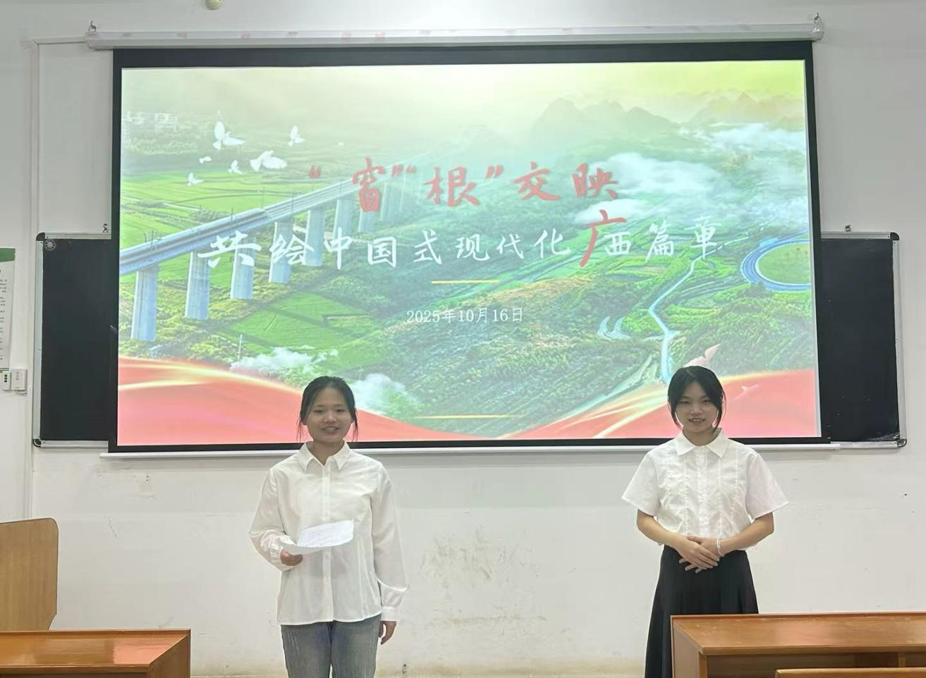 比赛现场,选手们从不同切入点出发,将国家发展与个人成长紧密结合,对党的创新理论进行了多维度、深层次的阐释。其中,有的选手以自身社会实践经历为依托,真挚抒发青春报国的志向与力量;有的选手通过讲述时代楷模的动人故事,传递思想力量,将党的创新理论讲得通俗易懂、深入人心;还有选手通过开放之“窗”、乡土之“眼”,借东盟博览会和农业与文化发展,结合理论描绘广西发展的壮阔图景。