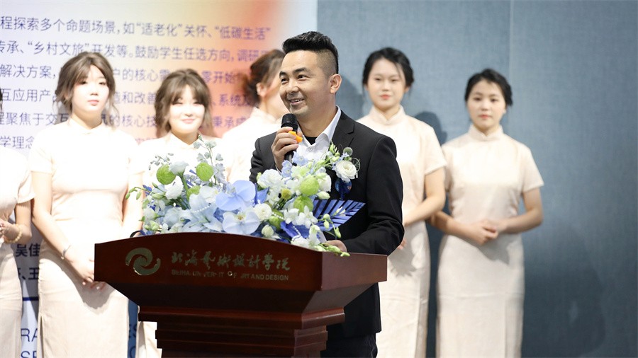 教师代表吴佳燕在发言中讲述了教学与展览的感悟。作为一线教师,她深感责任重大,在数字媒体艺术这个日新月异的领域里,不仅要传授知识、解答疑惑,更要引导学生紧跟时代步伐,不断探索新的技术和理念。她分享了在教学过程中的有趣案例和感人故事,强调了创意和实践在数字媒体艺术教育中的重要性,并鼓励同学们要珍惜这次展览的机会,多交流、多学习,从他人的作品中汲取灵感和营养,为今后的创作之路积累更多的经验和智慧。