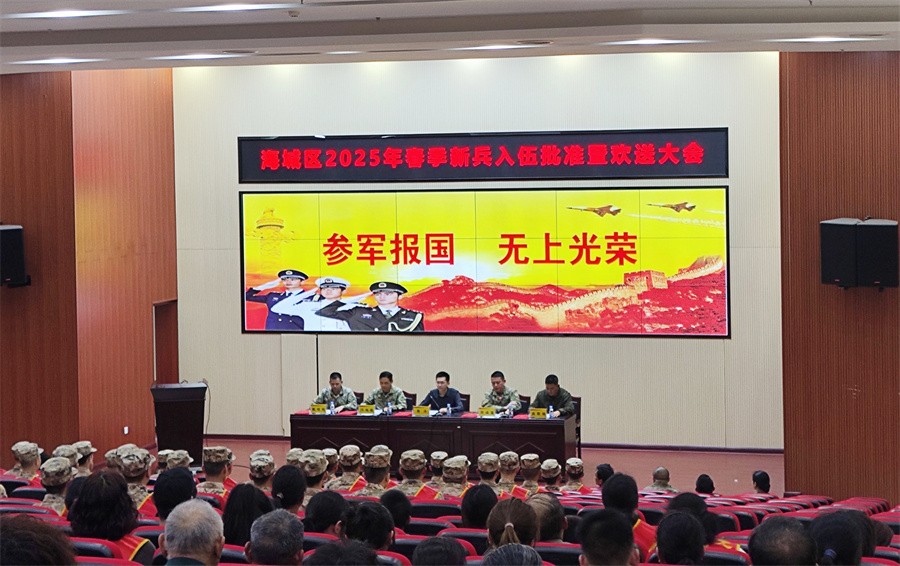 3月13日下午,北海市海城区举行2025年春季新兵入伍批准暨欢送大会,我校副校长何煜出席大会。