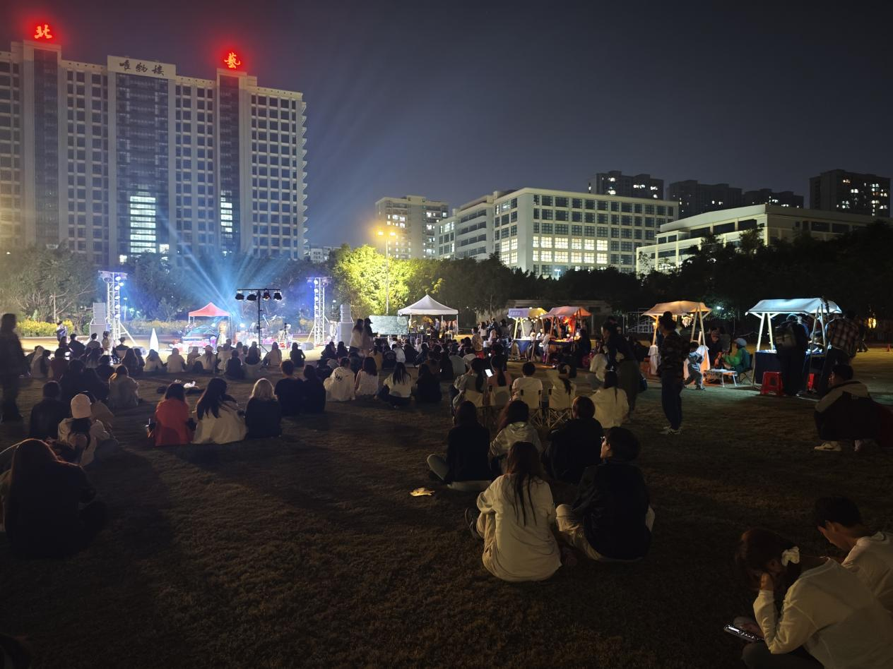 12月21日晚,我校创新创业学院在西校区操场举办“音乐+文创”青春市集,将“南潮北艺”校园文创品牌与“师者乐音,为你唱歌”草地音乐节相结合,为多支在校学生团队提供零租金摊位与全流程合规指导。活动吸引了众多师生在美妙的歌声与绚烂的灯光中体验我校学生自主设计开发的原创产品,现场氛围热烈。