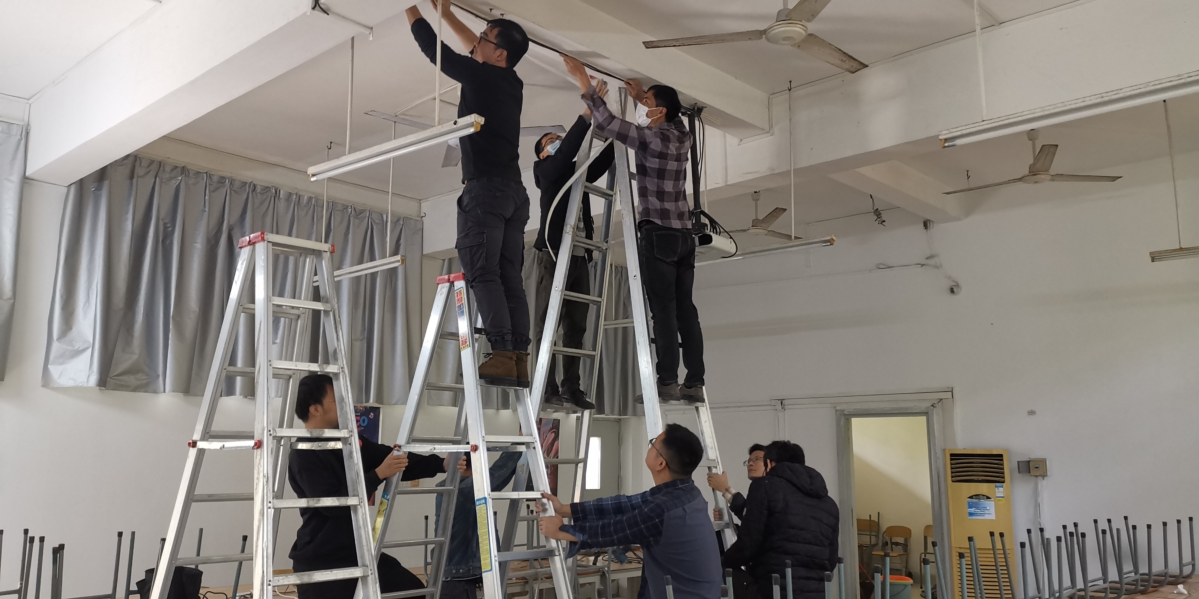 2022年12月,设备与信息处的老师们在本学期放假前对设施、设备进行一次全面检测、验收,并在假期分时段安排人员做好设备养护、维修工作,保障下学期开学正常使用。