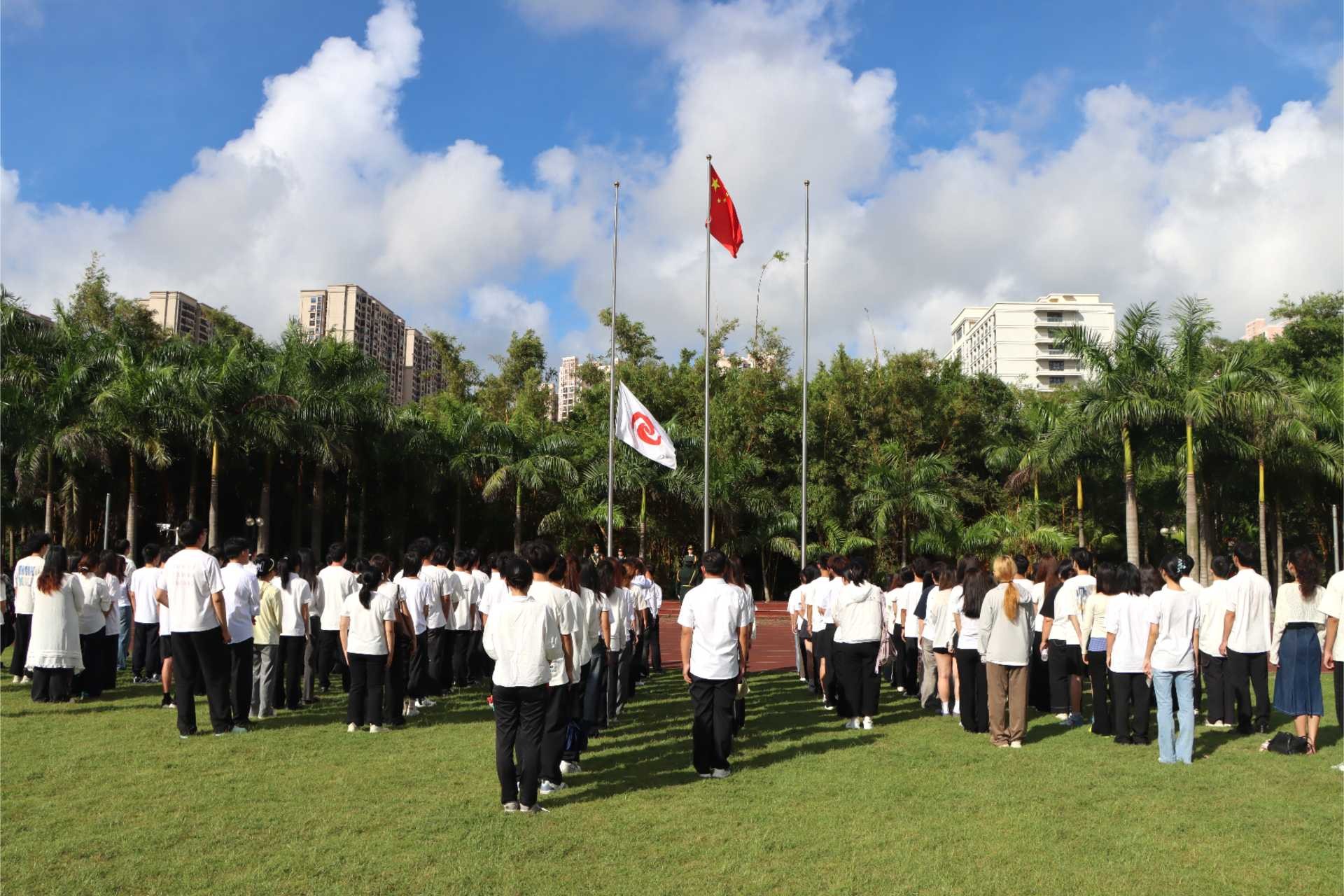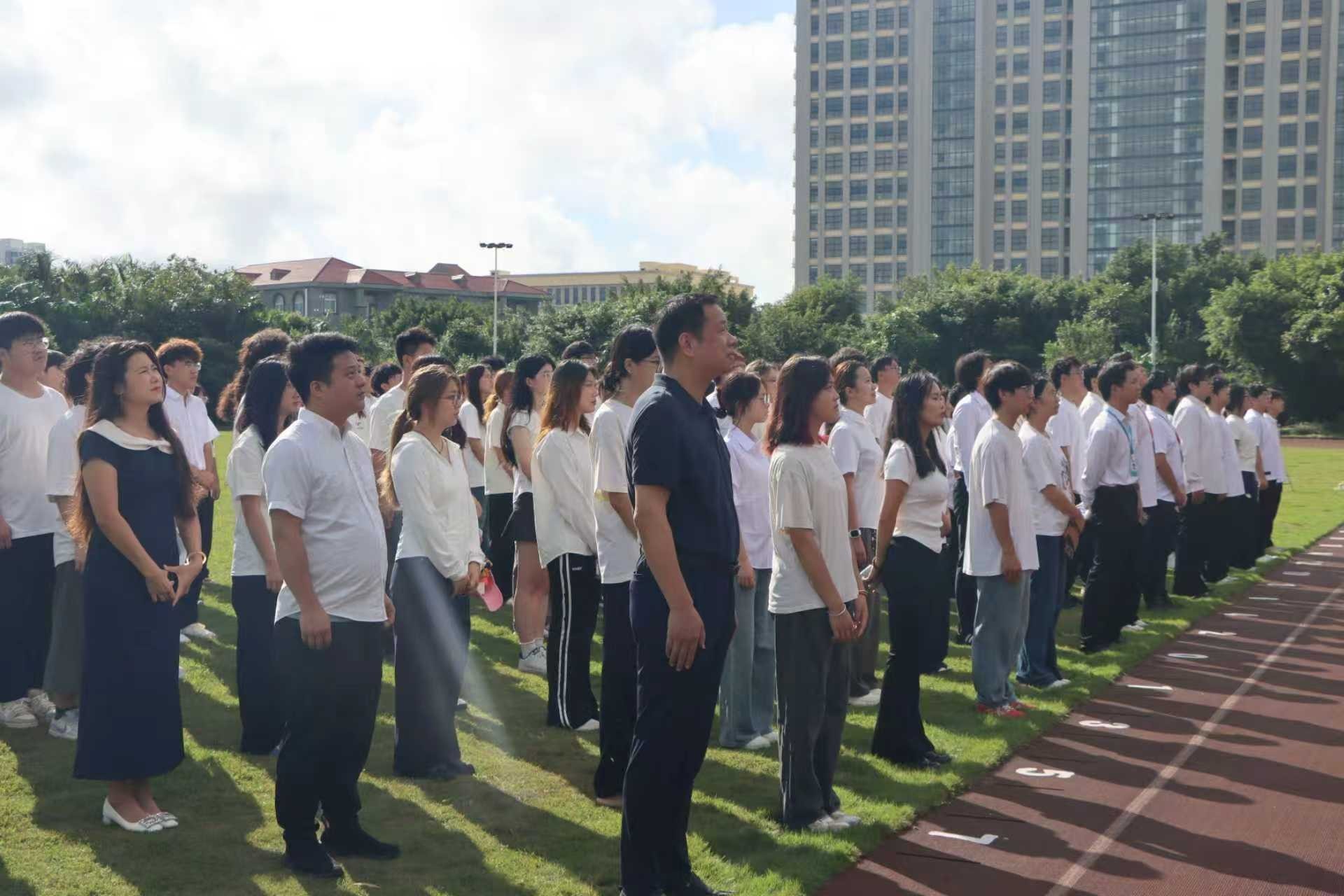 10月1日,为庆祝中华人民共和国成立 76 周年,大力弘扬爱国主义精神,我校在西区操场举行庄严的升旗仪式。