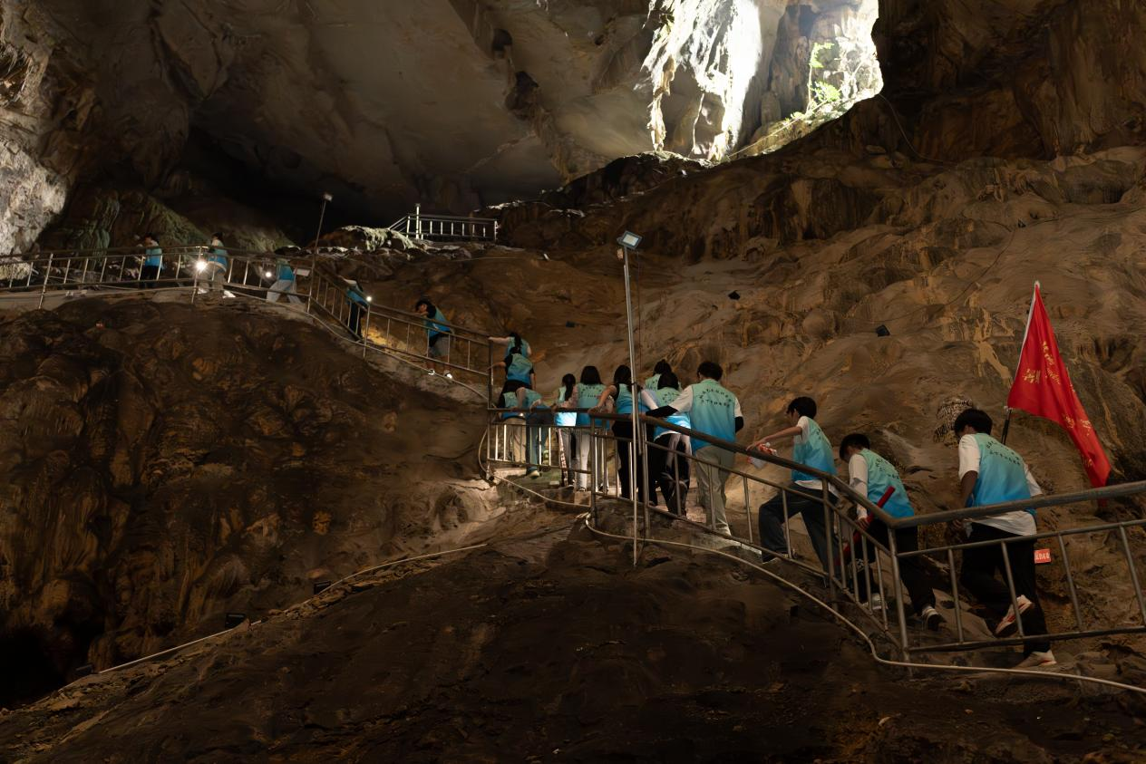 讲解结束后,宣讲团成员怀着崇敬的心情,沿着崎岖的山路,走进红军洞内部。洞内环境幽暗潮湿,道路蜿蜒曲折,宣讲团成员们相互搀扶,小心翼翼地前行。墙壁上的痕迹、狭窄的通道,无一不在诉说着当年的艰辛与不易,也让大家更加深刻地体会到革命胜利的来之不易。